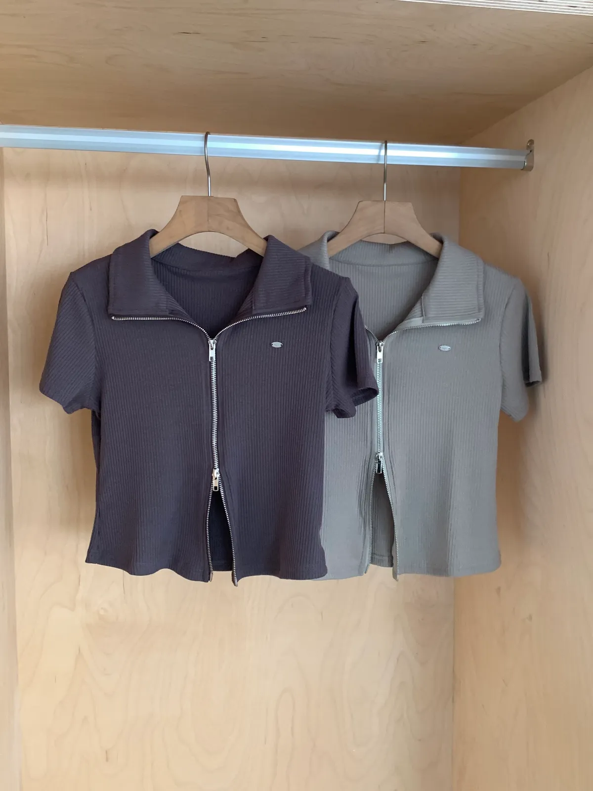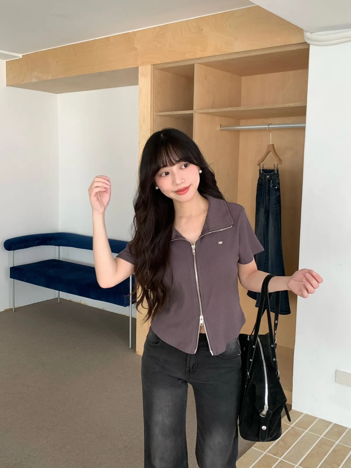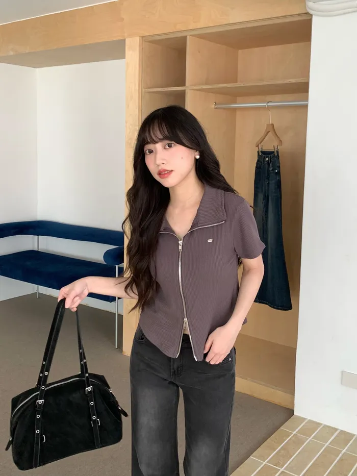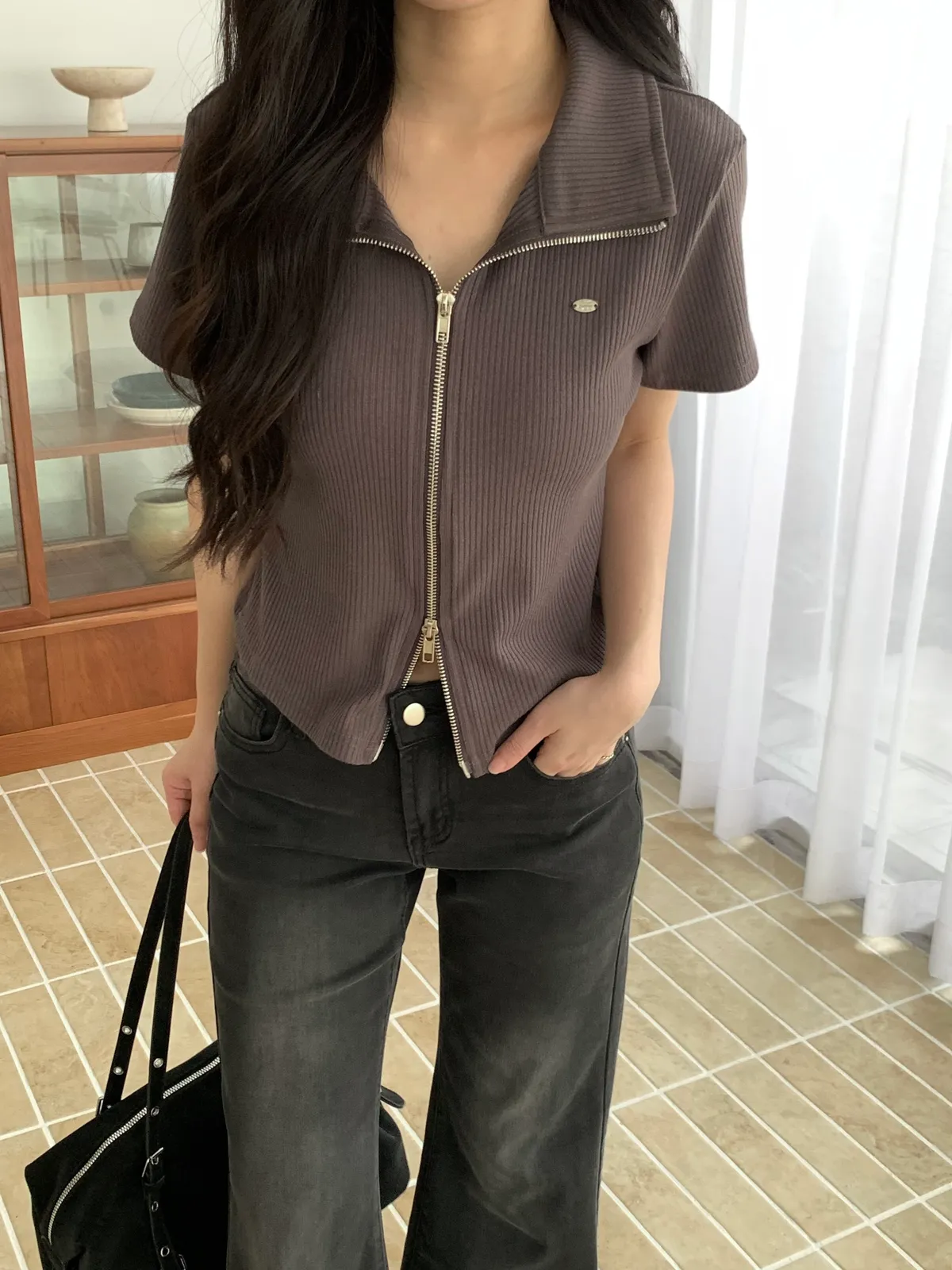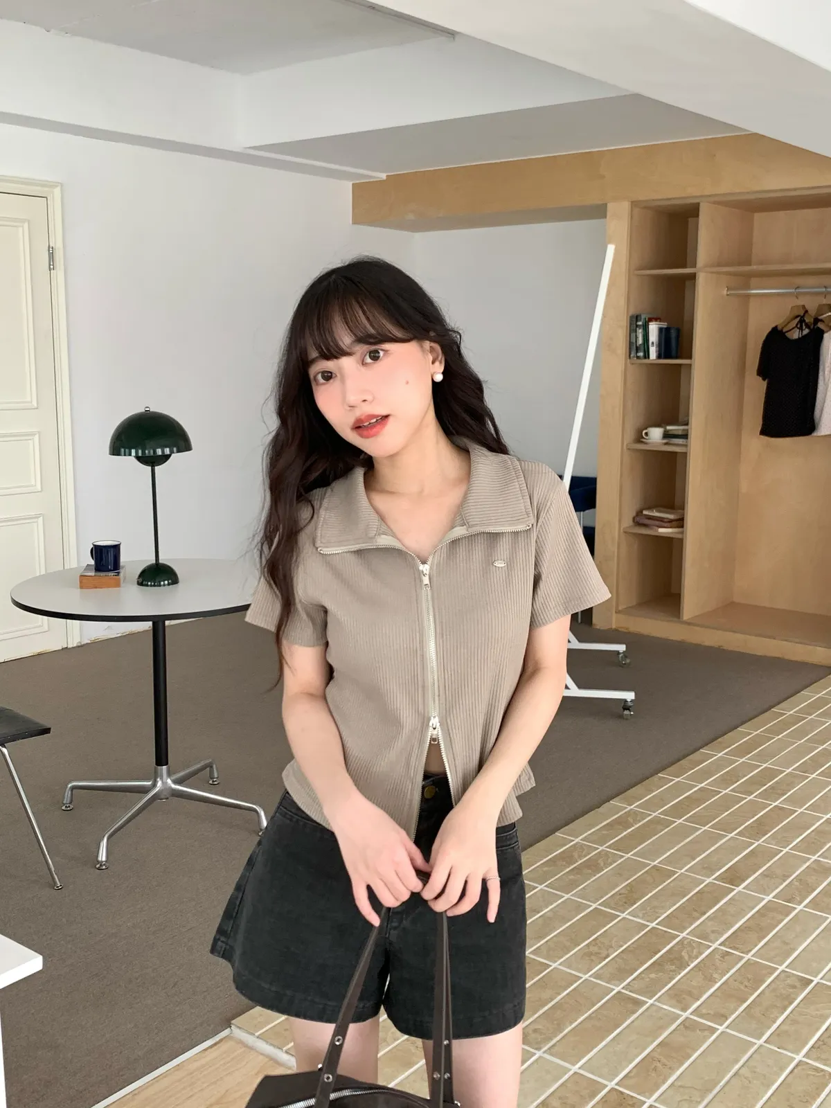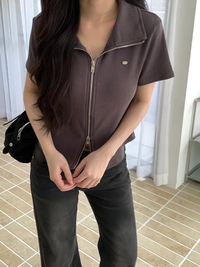 Apr.Kiss me銀標坑條拉鍊上衣(2colors)