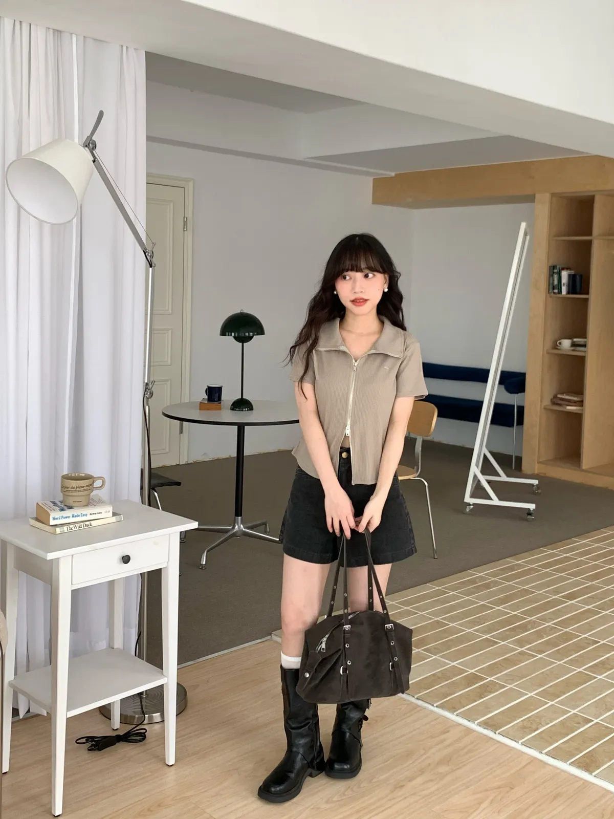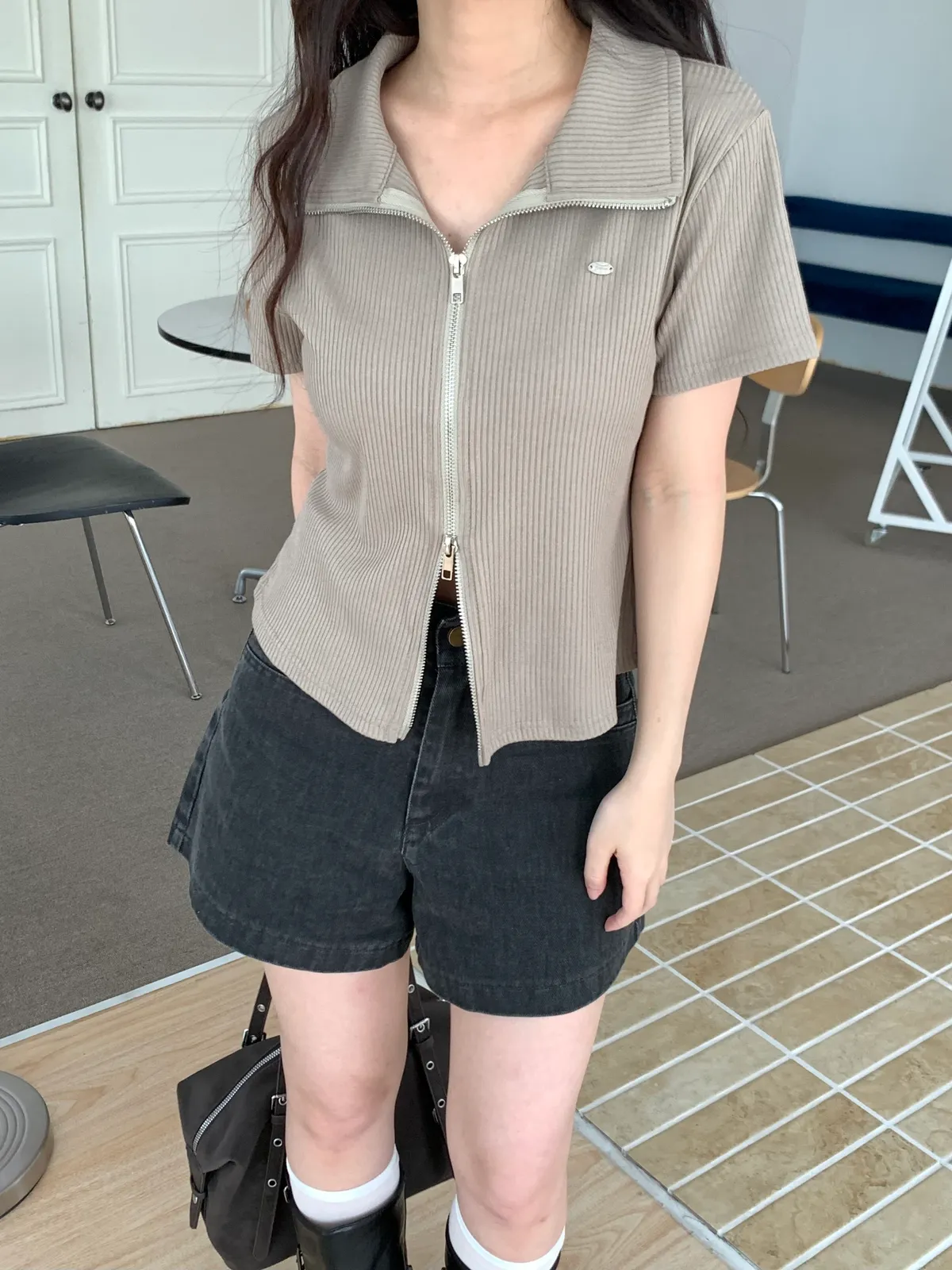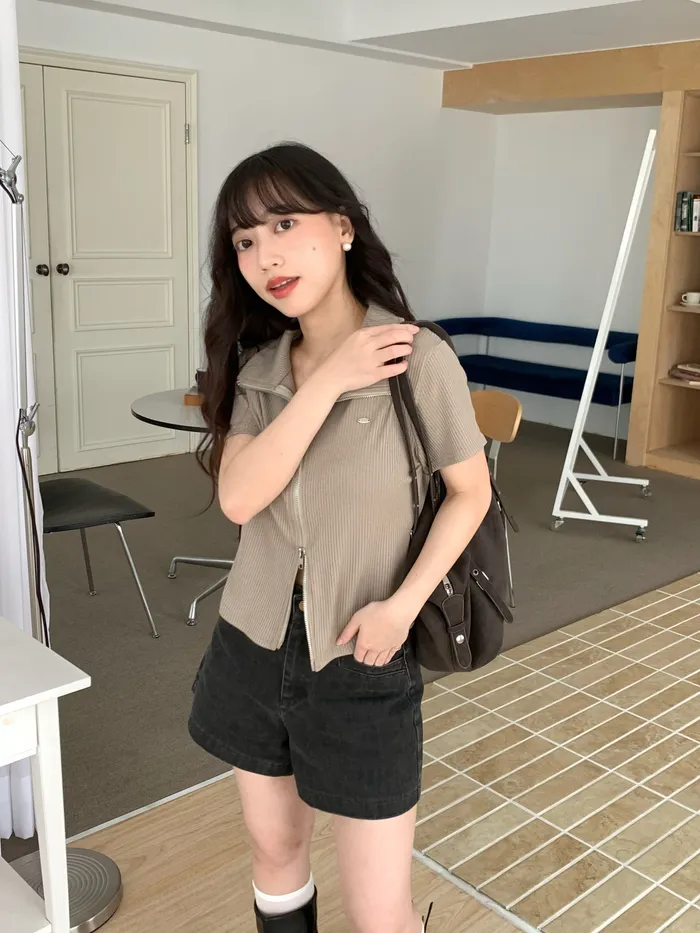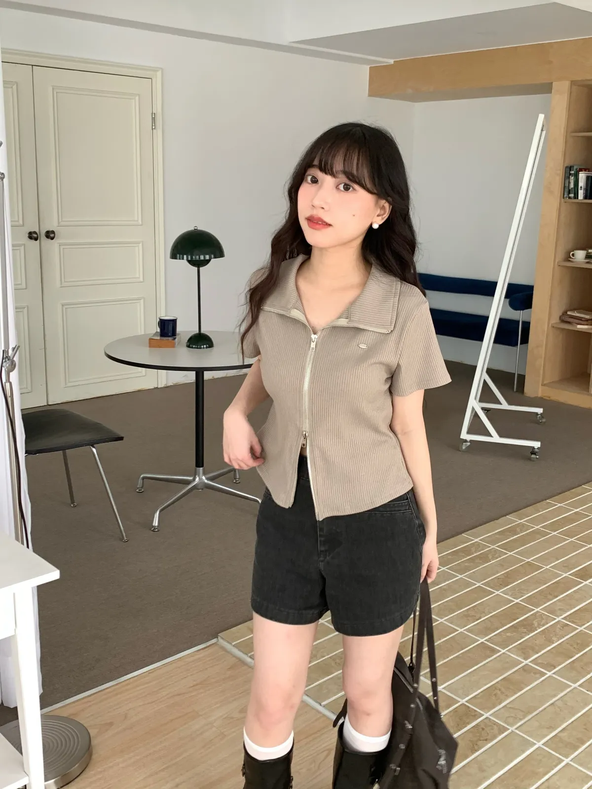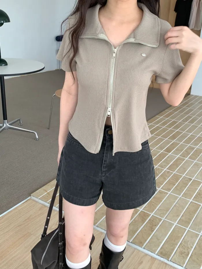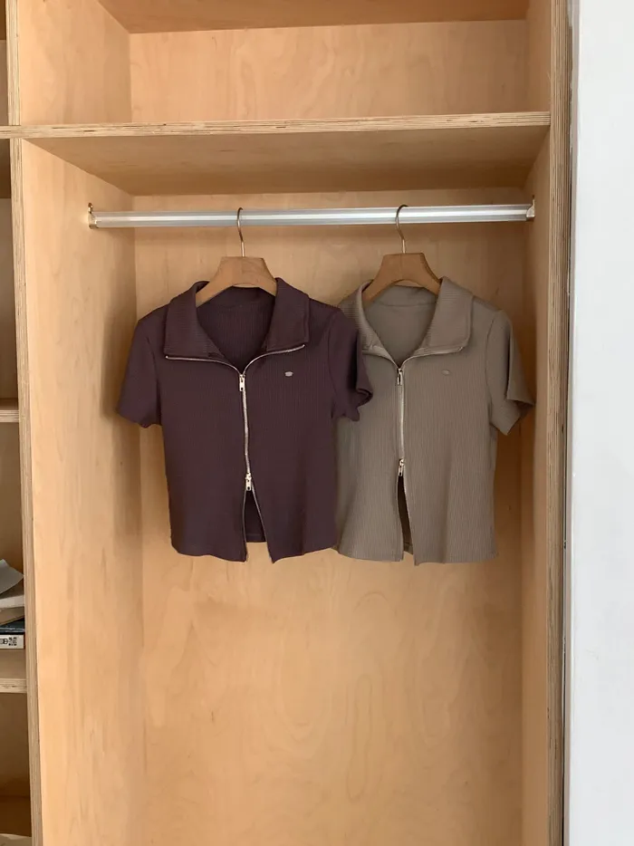 Apr.Kiss me銀標坑條拉鍊上衣(2colors)