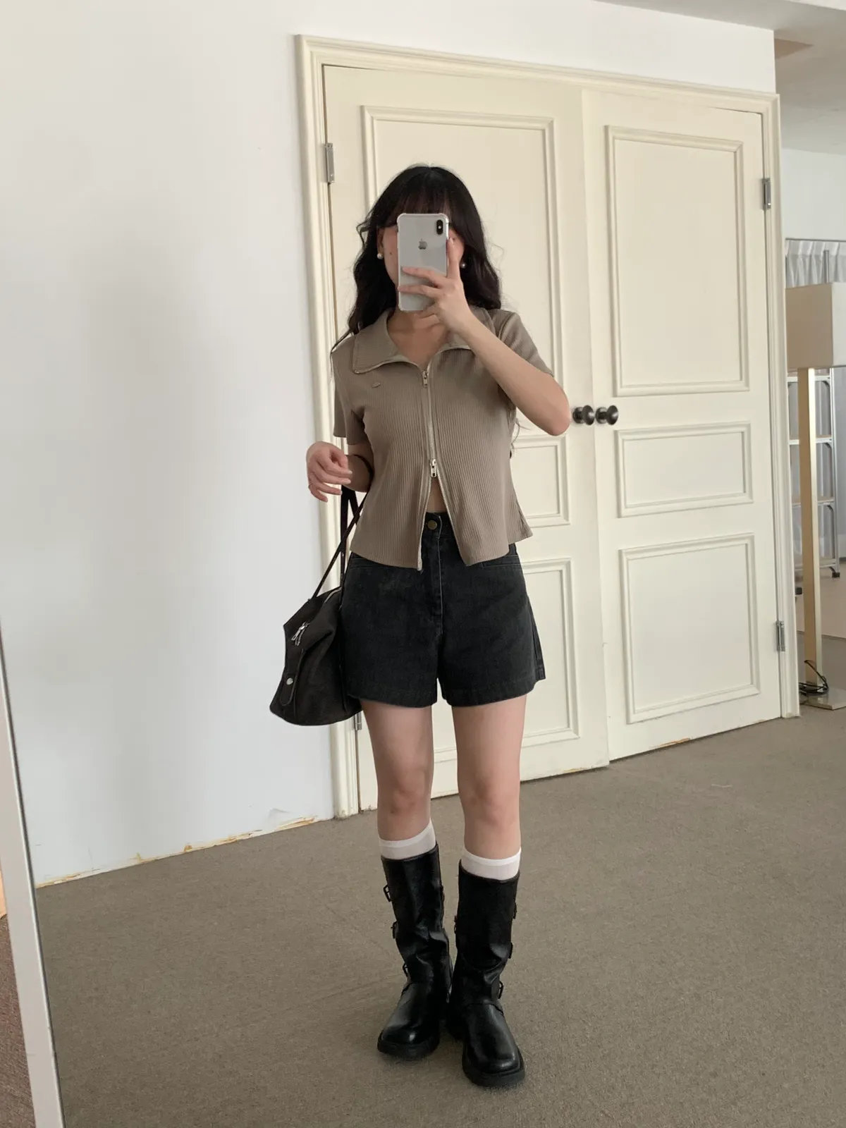 Apr.嬉皮街頭高腰水洗牛仔短褲(2colors)