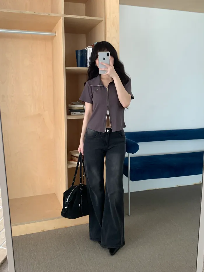 Apr.New Era灰影低腰微喇叭牛仔褲(小個/正常)